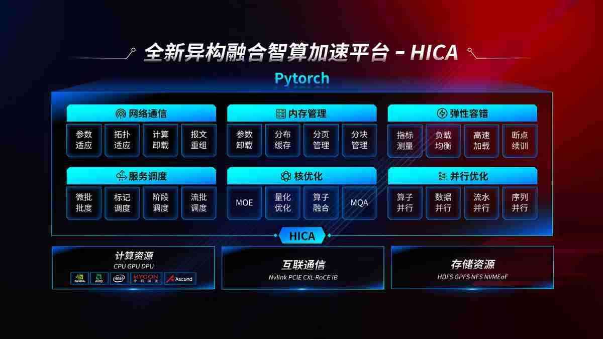 通过自研的服务层、、中间适配层、、、以及调度编排算法,,,采用数据并行、、模型并行等多种并行方式,,,,把并行计算任务进行有效的分解,,,,使其分别由相应的软件栈和算力资源来承接。。。当GPU资源变化,,,,HICA可以实时动态调度计算子任务并调整模型拓扑和架构,,,以充分聚合各种算力资源。。。。
